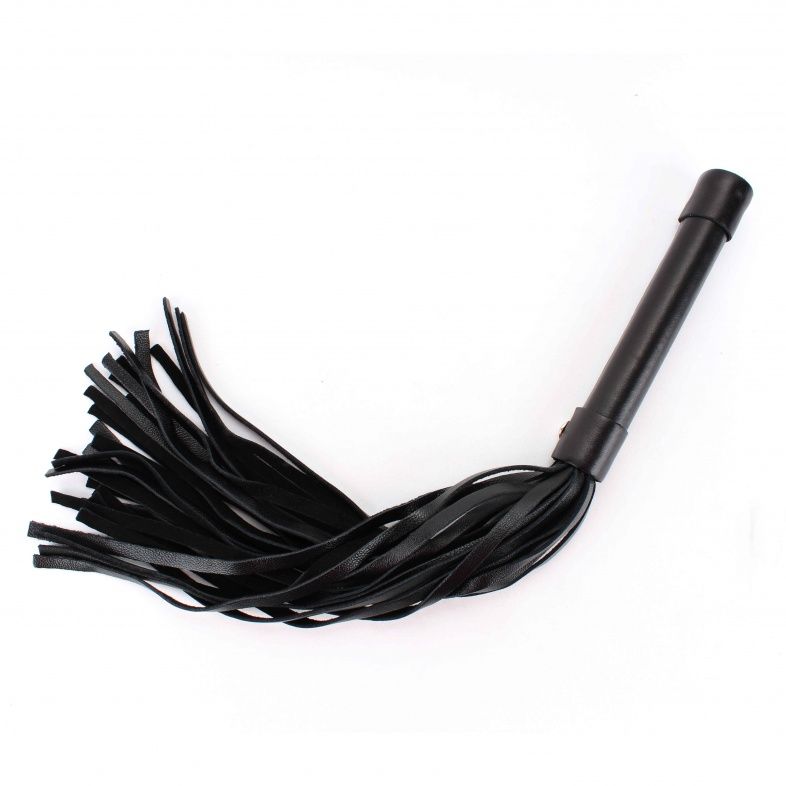Аккуратная черная плетка, изготовленная из натуральной кожи. Имеет жесткую ручку, также покрытую кожей. Имеется петля для удобного использования плети. Длина хлыстов - 28 см.