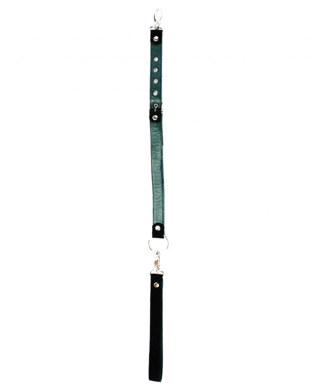 Поводок с одной стороны выполнен из натуральной кожи, а с другой стороны - из замши. Длина изделия регулируется металлической пряжкой, карабины и кольцо надежно фиксируют в подчинении, обеспечивая погружение в сладкий мир ограничений.