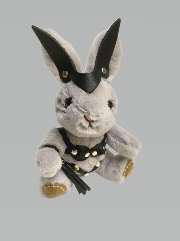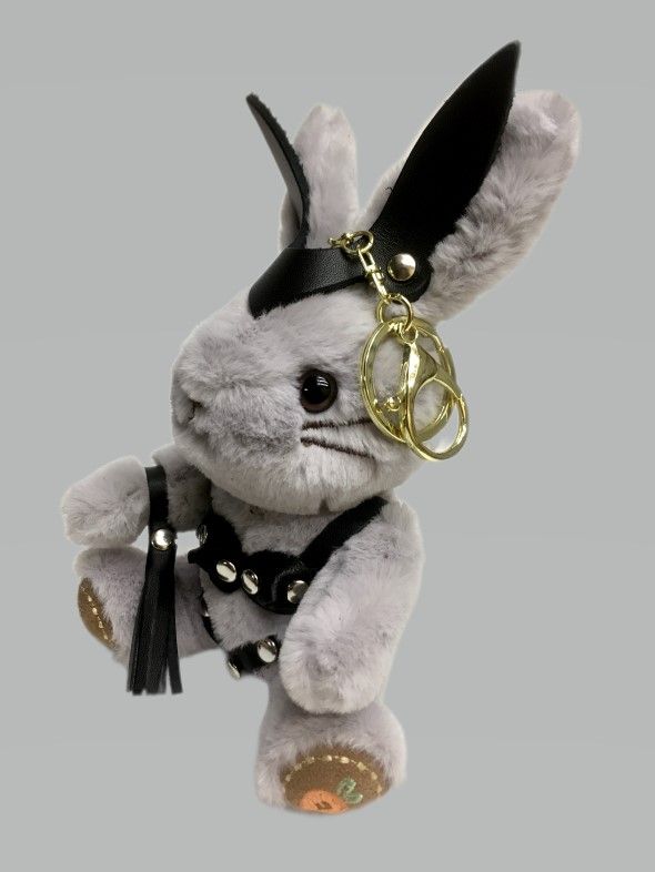 Госпожа зайчиха с плеточкой в стрингах и лифе украсит интерьер спальни, где зачастую бывает очень жарко. Плеть снимается и может служить отдельным аксессуаром, например, украсит ключ от машины. Игрушка оснащена карабином и кольцом, ее можно носить в качестве брелока на ключах или сумке. Костюмчик выполнен из натуральной кожи.