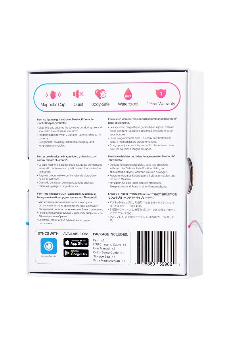 В секс-шопе Orgasmix вы можете купить Розово-черный вибростимулятор в трусики Lovense Ferri артикул 194036 по цене руб. с доставкой в город Тамбов. Мы осуществляем доставку по всей России. Ближайшая дата отправки этого товара . Заказы принимаются круглосуточно через интернет-магазин.