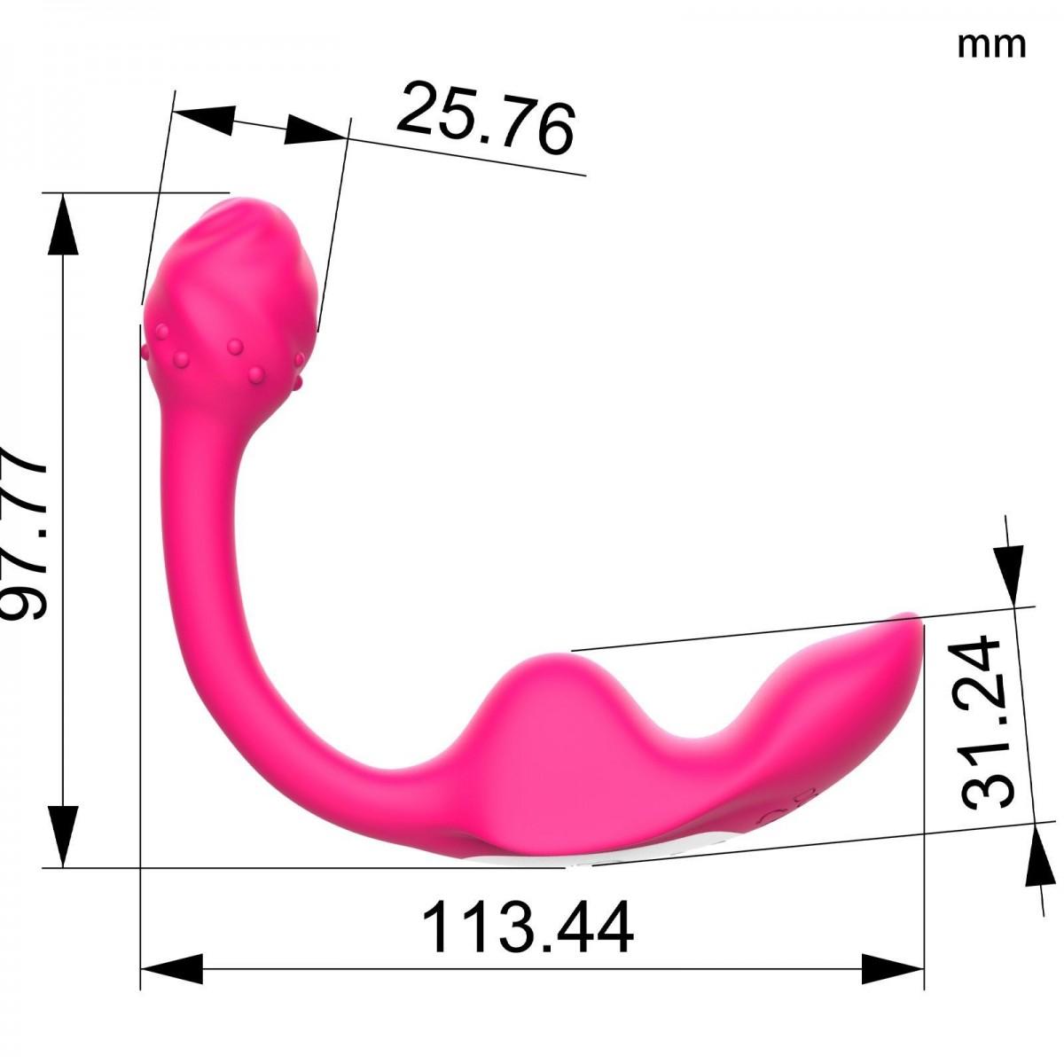 Розовый многофункциональный стимулятор для женщин. Имеет форму лодочки с бугорком посередине и отростком-шишечкой. Может вкладываться в трусики (и при этом отросток вводится в анус), может использоваться для одновременной стимуляции точки G и клитора. Управляется при помощи пульта ДУ, 7 режимов вибрации.