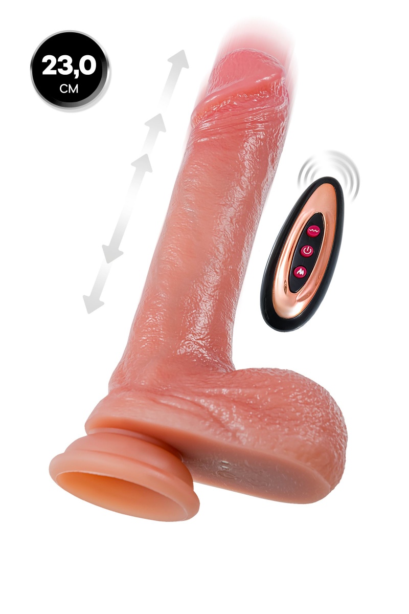 Крупный и уверенный вибратор для тех, кто предпочитает яркие ощущения. Сочетание длины, диаметра и функции движения вверх-вниз обеспечивает мощное наполнение. Подогрев и вибрация добавляют реалистичности и превращают каждое использование в особенное приключение. Особенности: 10 режимов вибрации, UP&DOWN, подогрев, пульт ДУ, магнитная зарядка.